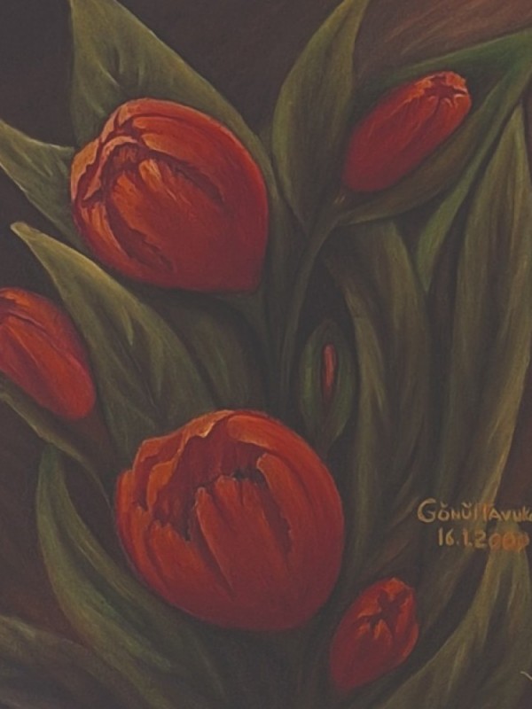 Bir Tutam Renk, Bir Demet Lale 50X50 boyutunda bir yağlı boya eseri olarak karşımıza çıkıyor. Bu özgün tablo, 2012 yılında üretilmiştir. İşte eserin özellikleri: